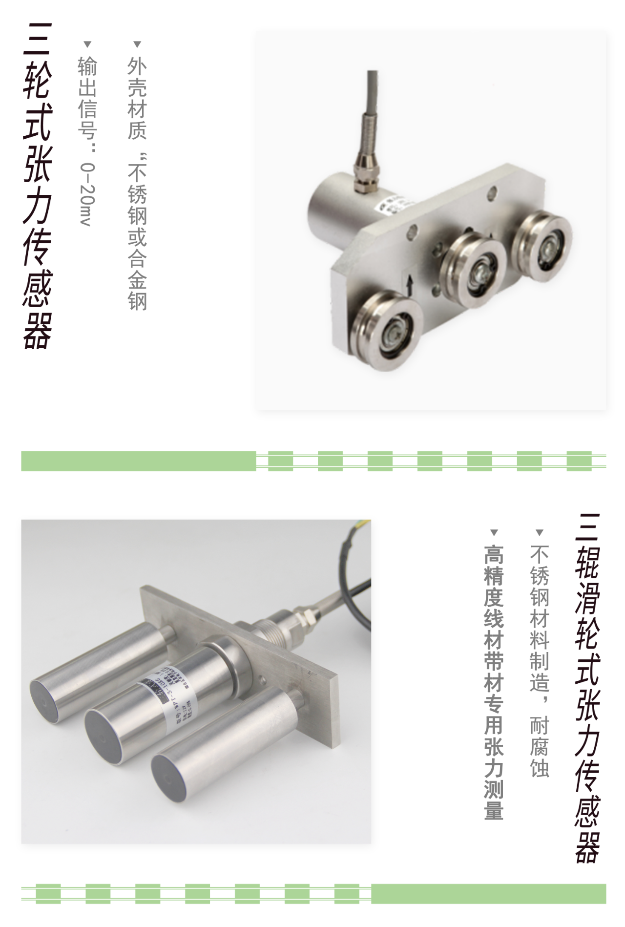 軸臺式張力傳感器采用了軸承套臺面安裝結(jié)構(gòu)形式,應(yīng)變式惠斯通電橋設(shè)計,使得其響應(yīng)頻率大大提高,輸出信號具有線性好和響應(yīng)快的特點,保證了零點絕對回復(fù)。被普遍應(yīng)用于印刷、復(fù)合、涂布、剪切、造紙、橡膠、紡織、電線電纜及膠片等卷取控制設(shè)備和生產(chǎn)線上,外觀結(jié)構(gòu)主要依據(jù)進(jìn)口傳感器的基本結(jié)構(gòu)生產(chǎn),具有較高的通用性,能夠適應(yīng)市場上主流軸臺式張力傳感器的安裝方式。