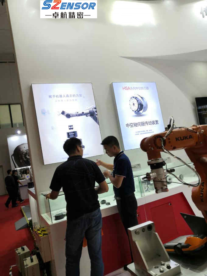 另一方面,則是把傳感器與機器人相融合,進而實現(xiàn)人機協(xié)同。此次,卓航精密把六維力傳感器安裝在庫卡機器人的末端,通過傳感器來控制機器人末端夾爪的力度,從而實現(xiàn)相關(guān)精密操作,例如精密裝配、柔性打磨等;同時,現(xiàn)場還通過拖動示教上演現(xiàn)實版機器人與人的零距離互動,真人拖動機械手來實現(xiàn)相關(guān)操作,不僅讓現(xiàn)場的觀眾零距離體驗到“人機協(xié)同”的存在,也深刻的感受到傳感器小小的身軀內(nèi)蘊含的巨大的能量。